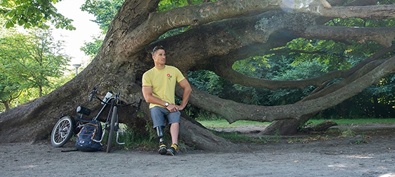 De in 1991 in Amsterdam geboren Jetze Plat kwam ter wereld met onvolgroeide benen. “Daar ben ik als kind niet per se door beïnvloed; ik wist gewoon niet beter. Wel moest ik oplossingen bedenken voor dingen die voor anderen heel normaal zijn, zoals fietsen. Toen ik 5 jaar was, kreeg ik van mijn ouders mijn eerste handbike. Dat kan ik mij niet meer herinneren, maar ik heb hiervan wel een filmpje waarop je ziet hoe blij ik was. Het plezier spat van mijn gezicht, de handbike gaf me meer vrijheid.”